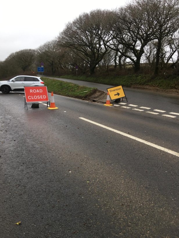 After a short distance trying to negotiate the verge of the A road my next problem presented itself… a police sign on the road stating that the road was closed and indicating a diversion down minor roads. What was the problem, was it flooding? I had no wish to go even further off route and share country lanes with heavy traffic so I took the gamble that, although the road was closed to vehicles, a mad walker could squeeze by. At worst I could retrace my steps back along the road. Soon I met a farmer and asked him what the problem was, was it flooding? He said that 2 cars had ended up in the ditch because of the rain but the flooding may have subsided. I wandered along with the whole road to myself. When I reached the point where the accidents had occurred I met the man who had been the first to go off the road the previous night. He had encountered around a foot and a half of water, ending up in the ditch with his car now a write-off. No-one was hurt, thankfully, but his misfortune was my good luck. The road was now back to normal and I had 2 miles of A road all to myself. The rest of the walk was, essentially, off the planned route but I managed to link up again 3 miles before Liskeard.