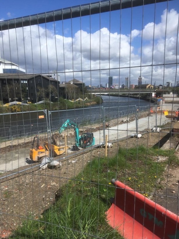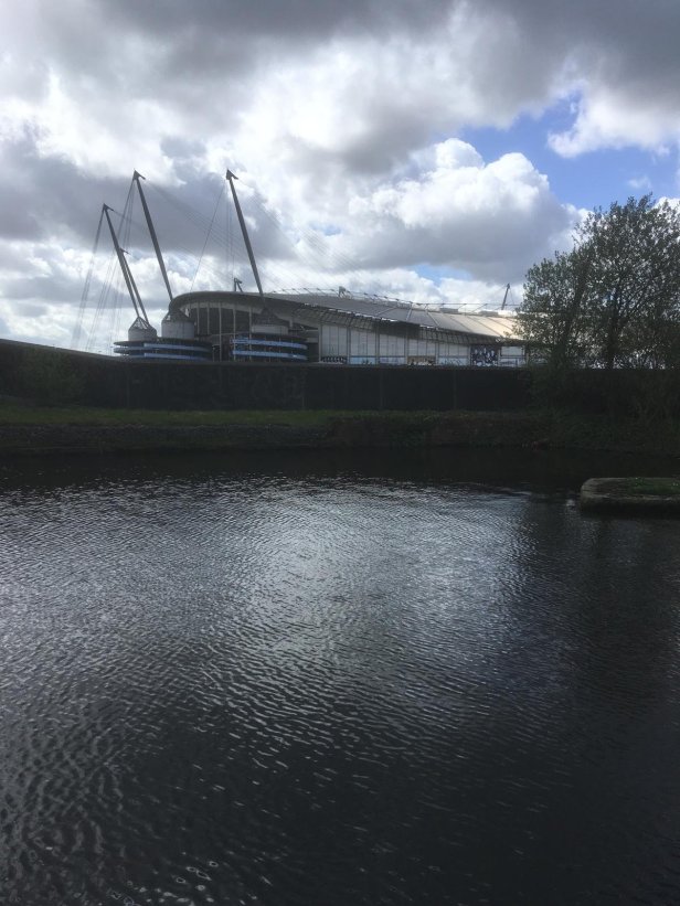 Quite soon we reached Sport City, the national centre for a number of sports, including cycling and decathlon that we could spot anyway. Also there was the Etihad Stadium, where Manchester City play. From there we continued right into Manchester city centre, passing many new developments, both commercial and residential. At points our route was NCR 60, the Cheshire Ring Canal Walk and the Medlock Valley Way.