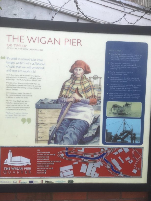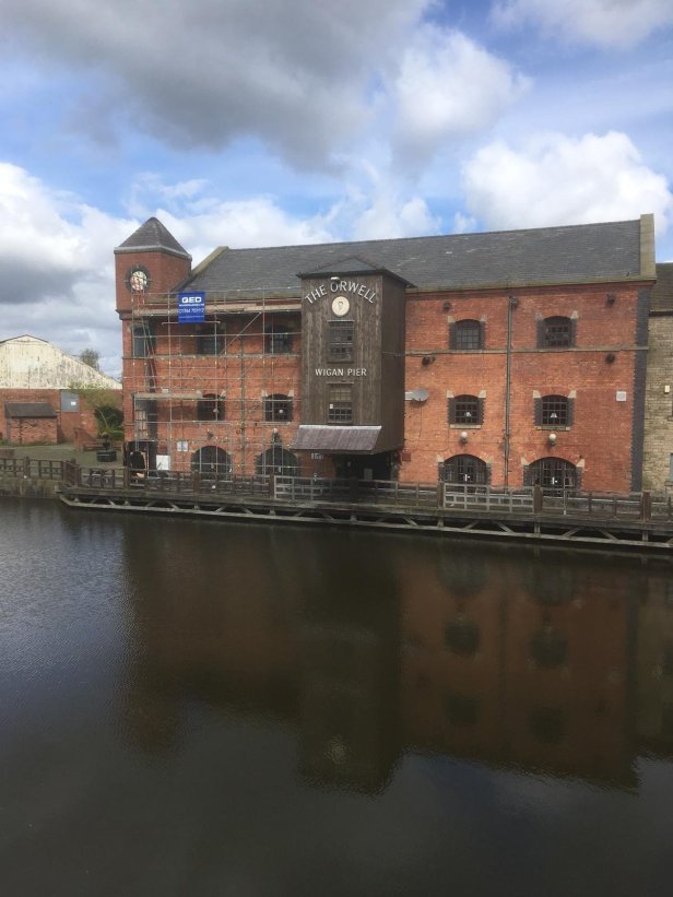 No sooner had I joined the canal in the centre of Wigan than I arrived at Wigan Pier. George Orwell wrote a well-known book in 1937 about the plight of the working classes in the 1930s with the title ‘The Road to Wigan Pier’. It was a bit of a disappointment, unfortunately – the Pier, not the book! Wigan is probably not an obvious tourist destination but they are missing a trick by not making more of this landmark.