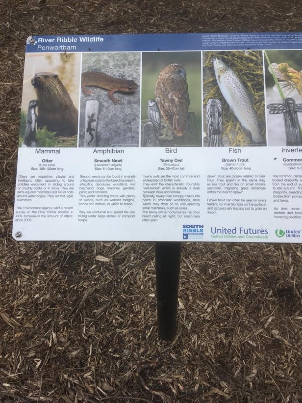 Pete was happy to do the whole of today’s planned walk all the way to Preston. We continued where we left off yesterday, following the Rufford Branch of the Leeds & Liverpool Canal until it ended after about 2 miles. Our route then took us along the bank of the River Douglas alternating with a little roadwalking. We then joined the Ribble Way which was our path for the rest of the day.