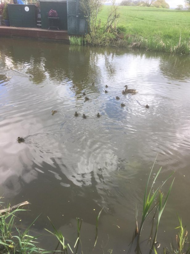 Near Potters Brook the familiar humming sound of the M6 motorway reminded me that it is never going to be too far away from me for the next few days. The canal itself had little traffic travelling on it. I did spot a duck with 16 ducklings on the water – a record for me on this walk. We also passed a field with a herd of alpacas… if that’s the correct collective noun.