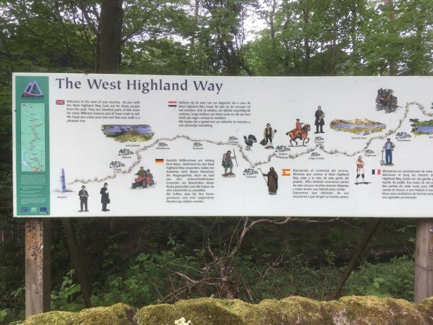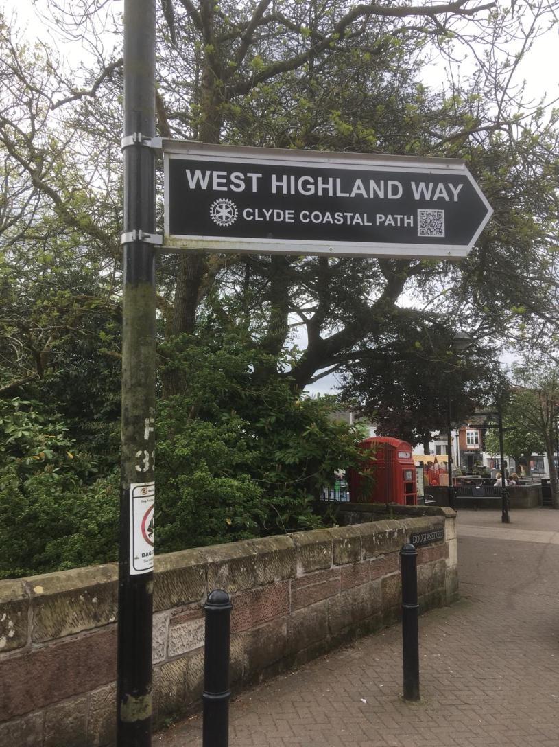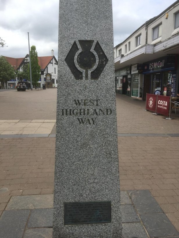 I had a lot to organise last night, having to pack for my final 3 weeks of the walk while still having a number of maps to print off. On top of that I had an early rise to catch the train to Glasgow, then Milngavie, to meet Pete for our third walking of the West Highland Way. The last time we did the full way was 25 years ago. The WHW is one long Kerching, No.13. As I have stated before, it was the very first Way Walk that Pete, George and I did, in 1988. It was extremely busy then – and judging by the amount of backpackers milling around the main street in Milngavie, it is still extremely busy.