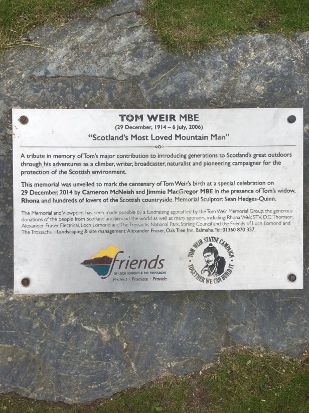 We set out just after 9am for the 4 mile walk along the B837, through Buchanan Smithy and Milton of Buchanan, to Balmaha. The road had a pavement all the way so it was a good, fast start to the walk. When we first tackled this walk 30 years ago I remember Balmaha having a cafeteria which was being extended to offer more facilities. Now the village has been tastefully developed and looks quite charming. A small park with a statue commemorating the Scottish TV outdoors enthusiast, Tom Weir, offered us an opportunity for a short break.