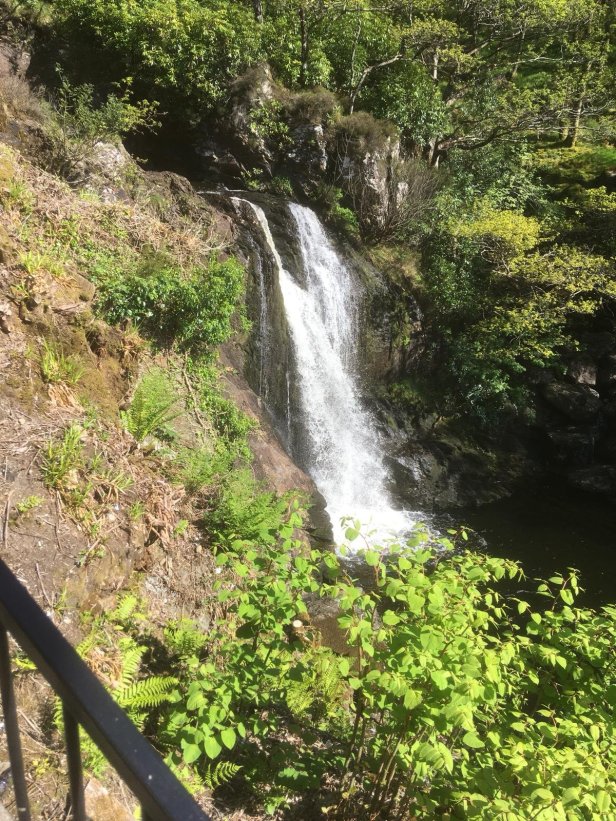 The sun had broken through by this point and the temperature was rising fast. As I approached the waterfall at the Inversnaid Hotel my eyes started to sting with sweat – something I don’t recall happening since Devon.