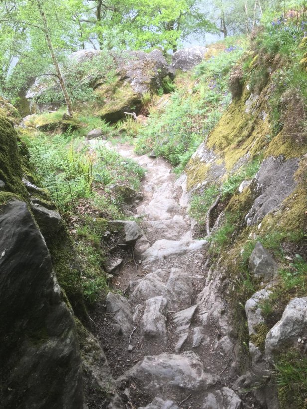 We started walking around 9.30am, heading north up the rocky track on the eastern shore of Loch Lomond. For 3 miles or so the path was rough, narrow and uncomfortable. This section was once described to me as β a bit of a scramble β, which I think is the perfect description. At times you need hands and feet to progress along the track. I was extra cautious, as I said yesterday, because I really didn’t want to twist an ankle at this late stage of my walk. It took us 50% longer to cover the first 4 miles of the day’s walk compared to yesterday.
