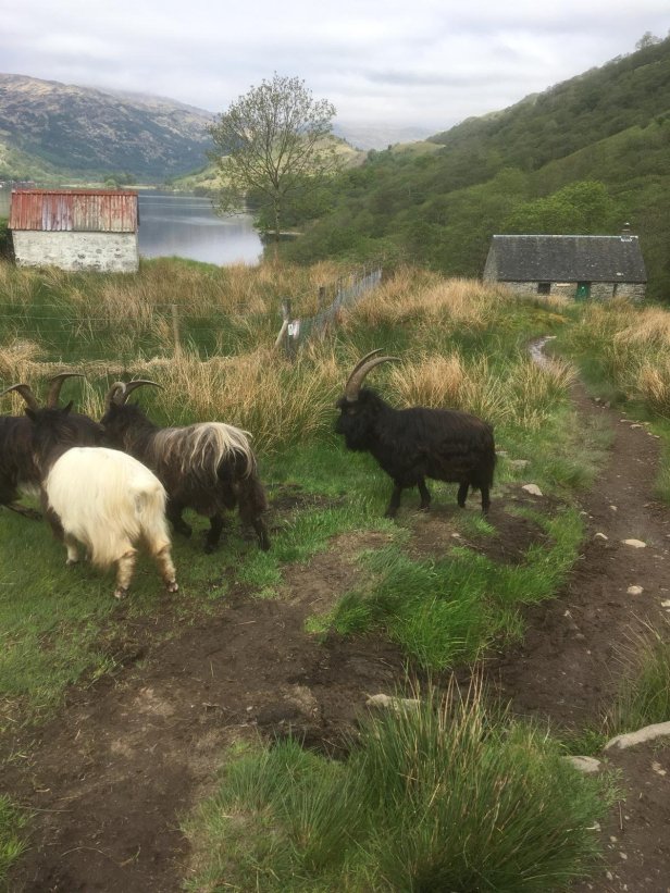 After passing Rob Royβs Cave it was noticeable that the loch was starting to narrow, indicating we were getting closer to the top the it. On the far bank, Ardlui came into view as, at last, our path started to level out. Walking conditions were back to normal by the time we reached Inverarnan coinciding with the sun making its appearance. At Beinglas Farm we took advantage of a bar/restaurant to enjoy a pint of cold cider.