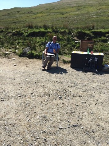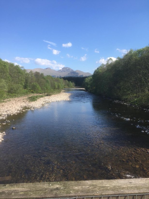 The final section of an extremely hot and testing day saw us leave the forest to join the River Fillan and work our way towards Tyndrum. We arrived there at 6pm, exhausted and dehydrated. I must have drunk about 2 pints of cold water as soon as I got to my hotel room. A warm shower for me, then a soak in the bath for Pete quickly cheered us up again.