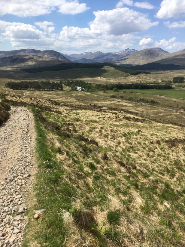 The morning was the hottest so far leaving us relieved that our walk wasn’t long enough for the heat to affect us. We got to Bridge of Orchy after 7.5 miles and took a break. This left only 2 miles to the finish at Inveroran. Although we were still following the same old road this last section involved a significant climb, but the views all around us were worth the effort. Our day’s walk was over by 2pm. Tomorrow is another long one with another hot day forecast.