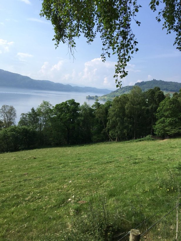 Looking backwards, early on, I had a good view of Urquhart Castle, which is one of the most recognisable and photographed castles in Scotland. I had washed 2 shirts last night but already the one I was wearing was soaked through with perspiration. I was grateful for the shade provided by the trees. The atmosphere wasn’t just as muggy as yesterday because an occasional breeze would arrive intermittently.