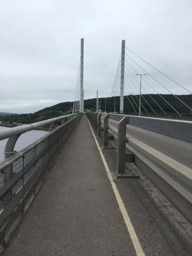 Soon my path across the Beauly Firth was towering above me – the Kessock Bridge. Completed in 1982 it is over 1 kilometre in length and carries 30,000 vehicles a day. Unsurprisingly, I was the lone pedestrian making the crossing. It was also my first encounter with the A9, a road, as I said earlier, which I will see a lot of in the days ahead. The walk across was a bit intimidating, as you would expect – thank goodness I wasn’t attempting it on a windy day! On making landfall I entered the County of Ross and Cromarty and the area known as the Black Isle.