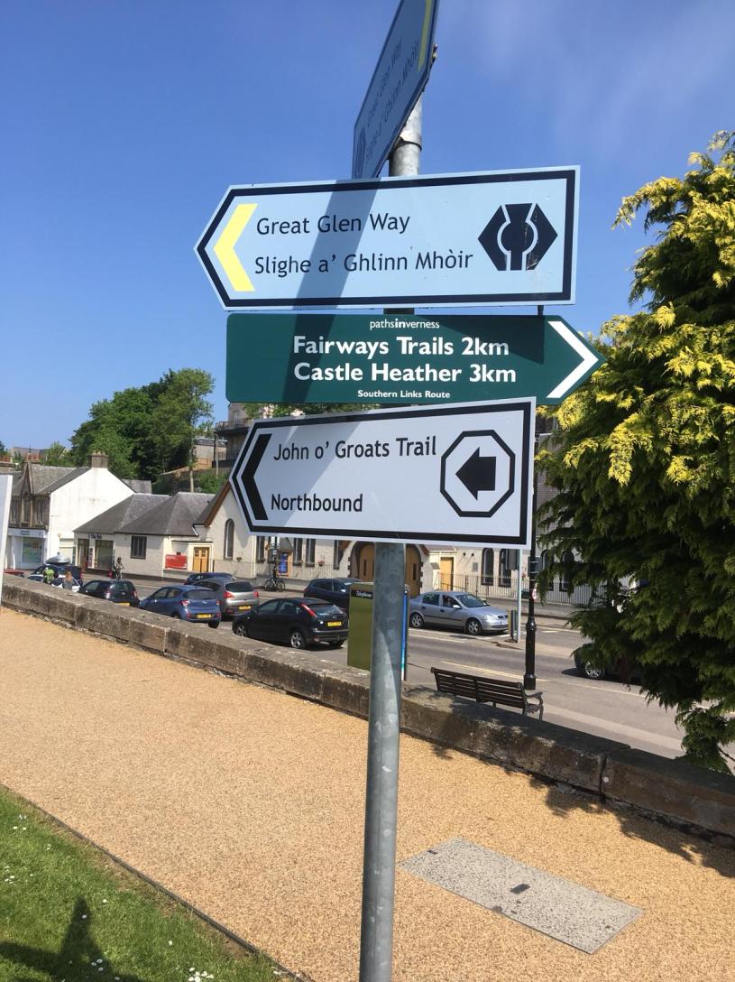 Today starts my final sub-section of LEJOG 2018. The planned 8 day walk between Inverness and John o’Groats is still ahead of me. It’s virtually all road walking, mainly because there are few possible alternatives as I head north and east. My plan is to follow National Cycle Route 1 (NCR1) for the first 3 days, then, when that goes in a different direction, I will use the A9 main road until I pick up the A99 to take me along to the finish line. A very few short path options look possible on the map – I’ll only know if they’re viable once I am physically there! There is a way walk being developed, the John o’Groats Trail, but it involves some wild – and possibly dangerous – walking, is not comprehensively signposted and would take nearly twice as long to complete.