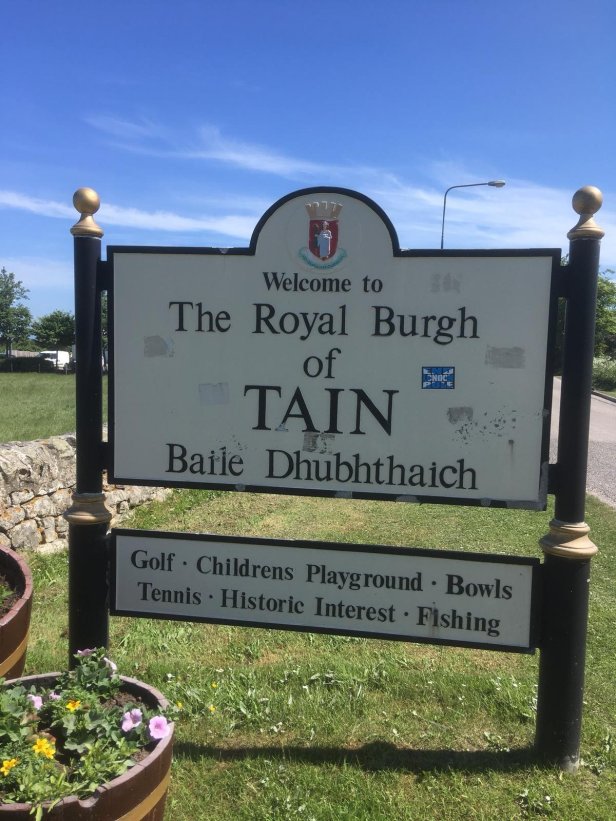 13.5 miles later, after passing through Glen Aldie, we arrived in the town of Tain. The constant pounding of feet on road was tiring for Pete so he opted to finish for the day at Tain and catch the bus to our destination at Dornoch. Need I mention that the weather was sunny and hot – cooler at times, when we caught the easterly breeze?