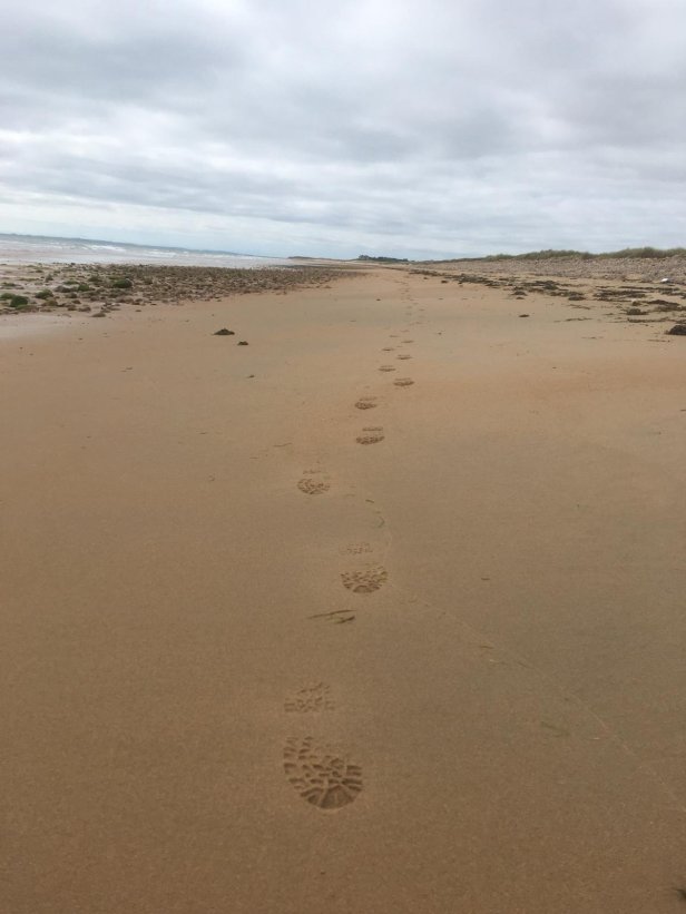 I spotted 3 oil rigs out at sea, the first I’ve seen other than those moored at Invergordon. Pete walked the whole 12 miles with me today. The weather was cloudy in the morning getting sunny and pretty warm in the afternoon. Today was my eleventh – and last – Friday of the walk. I can still vividly recall my first Friday, walking with Christopher into a sunny and warm Truro all those weeks ago.