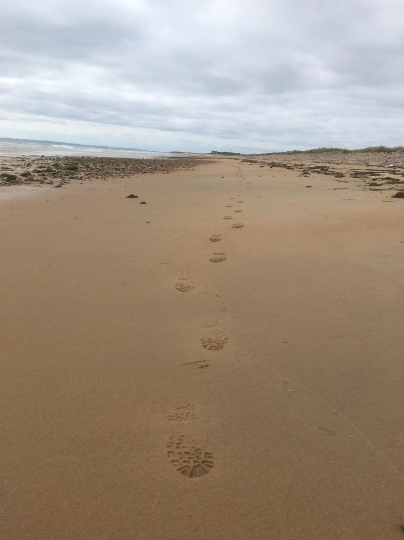 I crossed the bridge over the River Brora to meet Pete for a 10am start. We immediately headed back towards the coast via the other side of the river to the golf course. Like yesterday at Dornoch, we followed a path along the length of the links, only this time it was on the coastal side of the course. We met and had a good blether with a woman from Solihull, who was walking her 2 dogs. Her motorhome was berthed at the caravan park nearby. From observation, walking the West Highland Way and the Great Glen Way, and navigating the A9, these motorhomes have taken over from caravans as the touring vehicles of choice. They appear to be everywhere and people are telling us that they are clogging up the narrow roads on the Scottish Islands… as well as the mainland! But it does seem to be a cost-effective and flexible way to see this beautiful country that is Scotland.