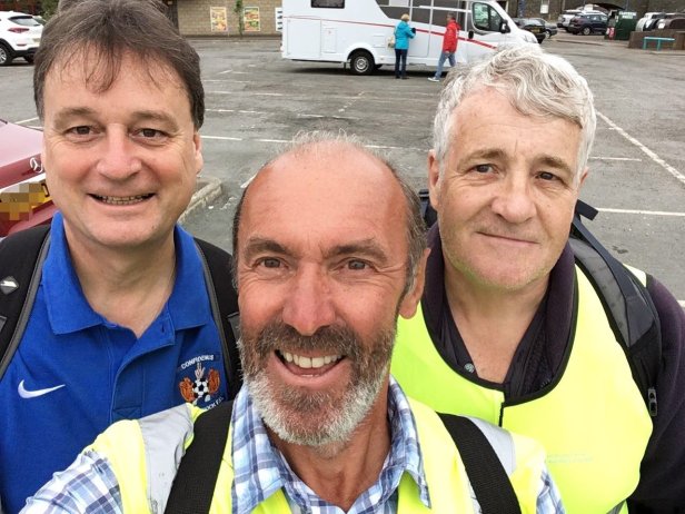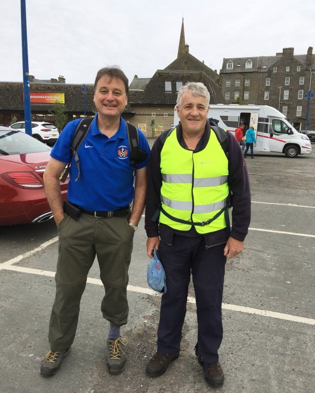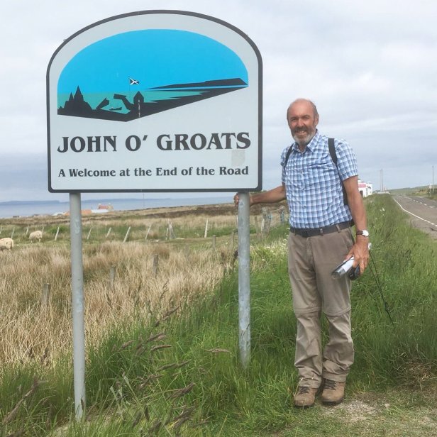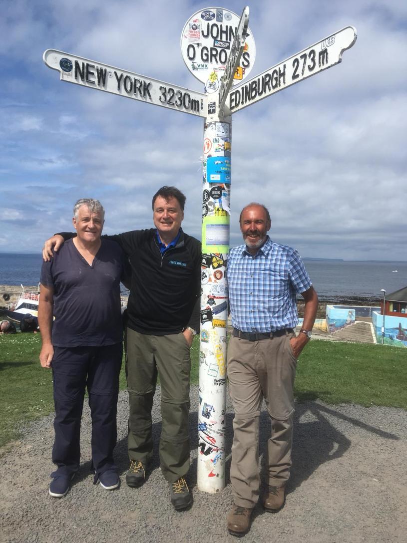 Eddie had driven 6 hours yesterday in the car, to do a road walk today, then drive the return trip tomorrow, giving both Pete and myself a lift home. Pete had joined me for 3 separate weeks of walking and wanted to be there at the end. The car park at the famous signpost was rather busy with vehicles, motorbikes and bicycles. Unlike Lands End it didn’t resemble a street in an American Mall – for that I am eternally grateful, please don’t be tempted to change that! My good friend, Bill, phoned me as I was nearing the sign – he’d kept in regular touch all the way.